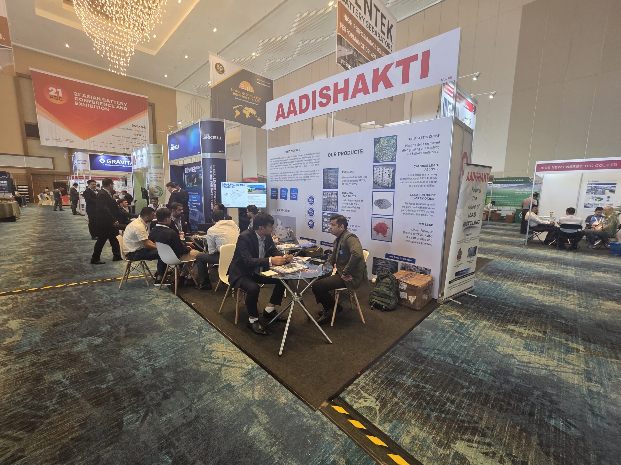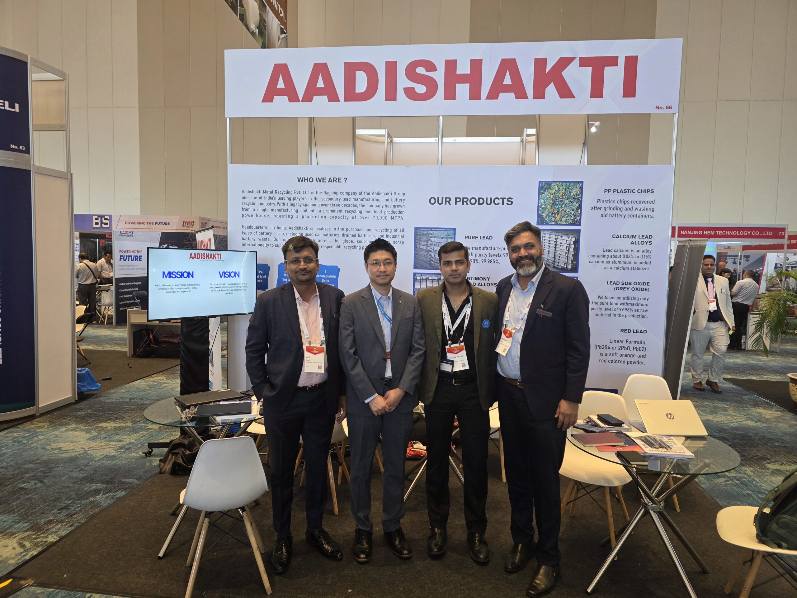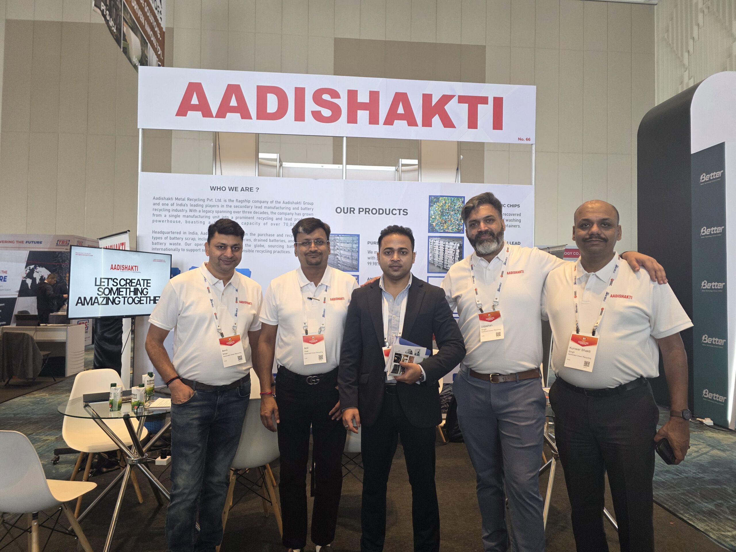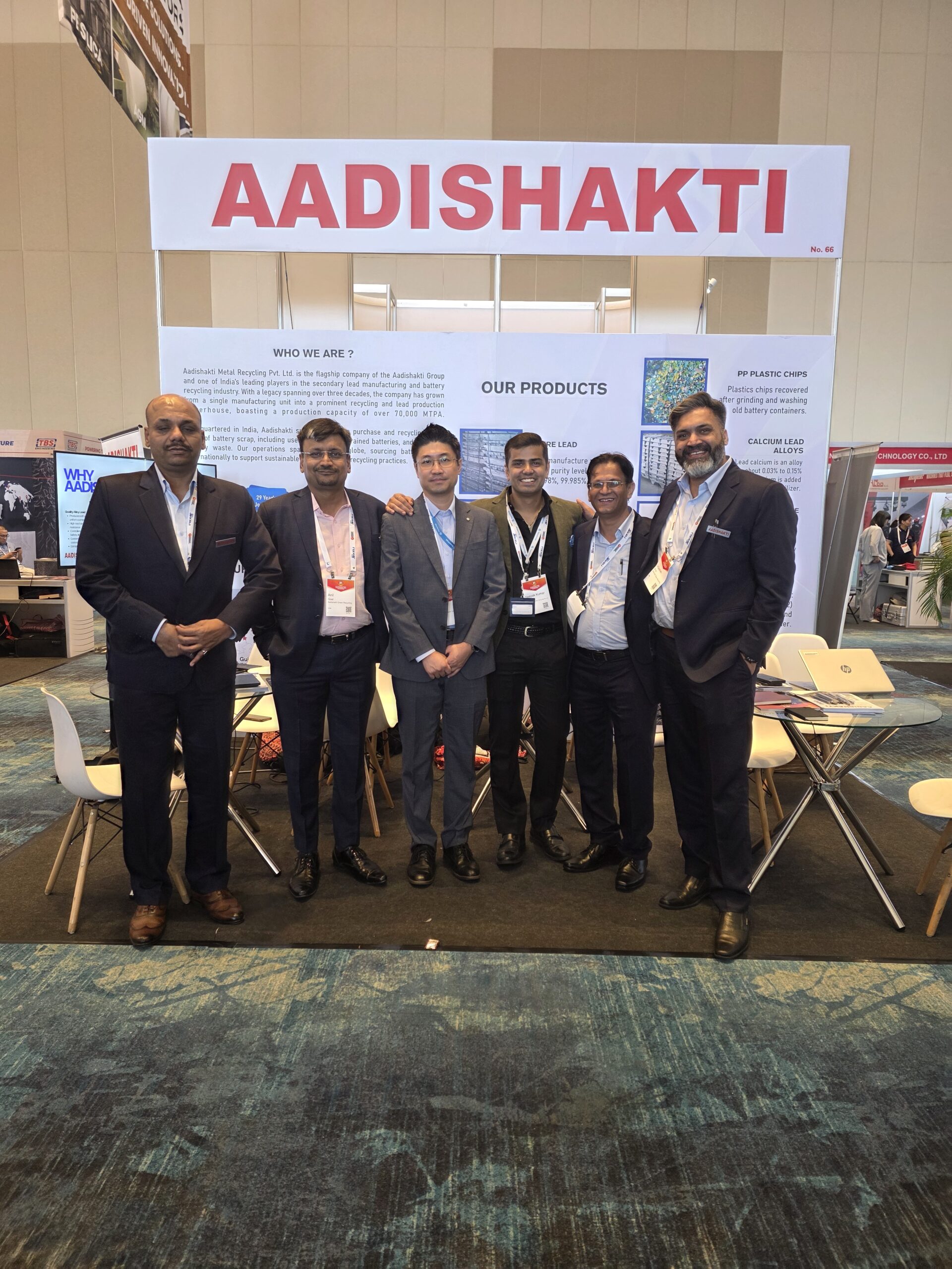 At Booth No. 1 (Recycle 100) and Booth No. 66 (ABC), Aadishakti showcased its expertise in lead recycling, refined lead production, and battery solutions, engaging with global leaders, innovators, and industry stakeholders.