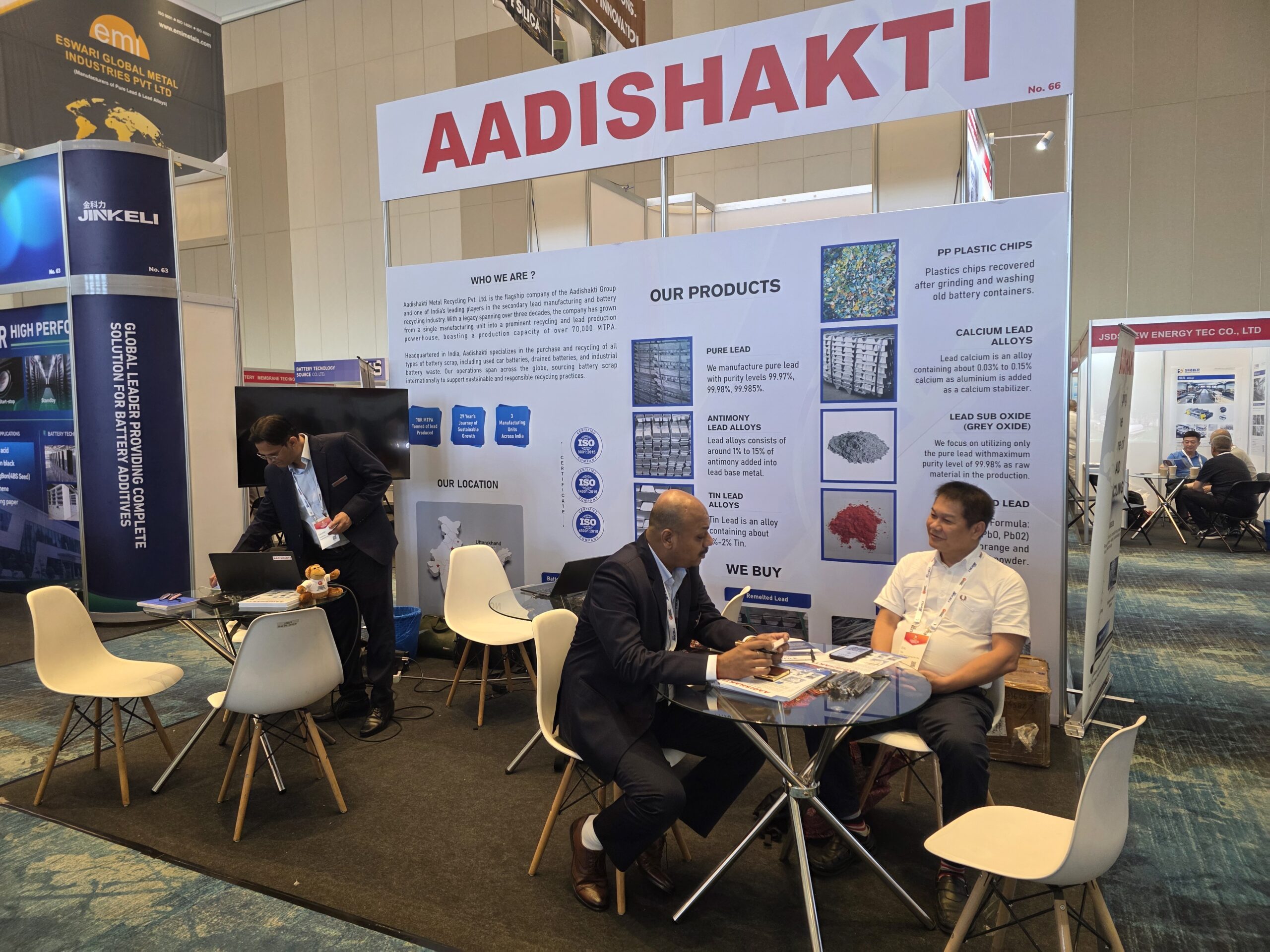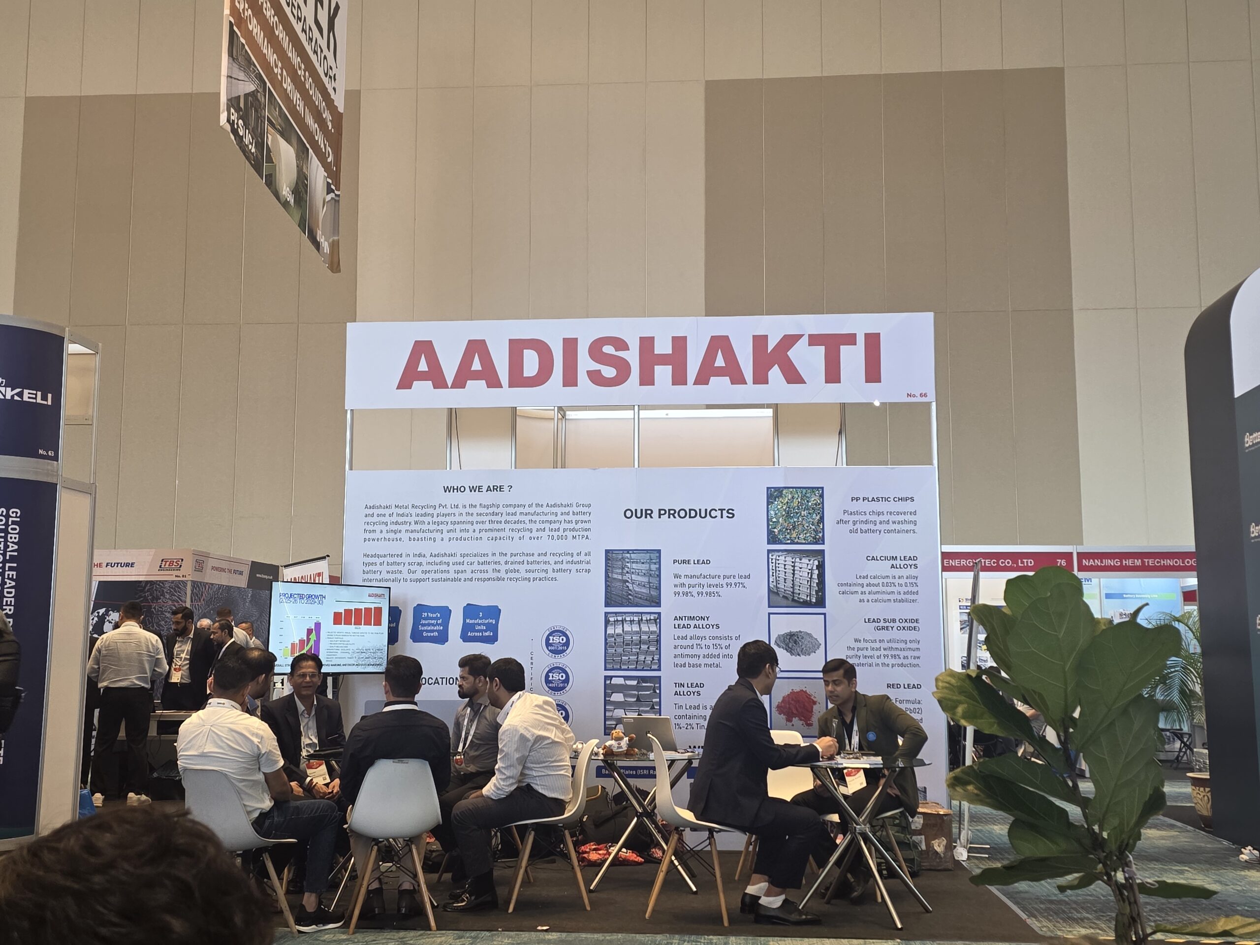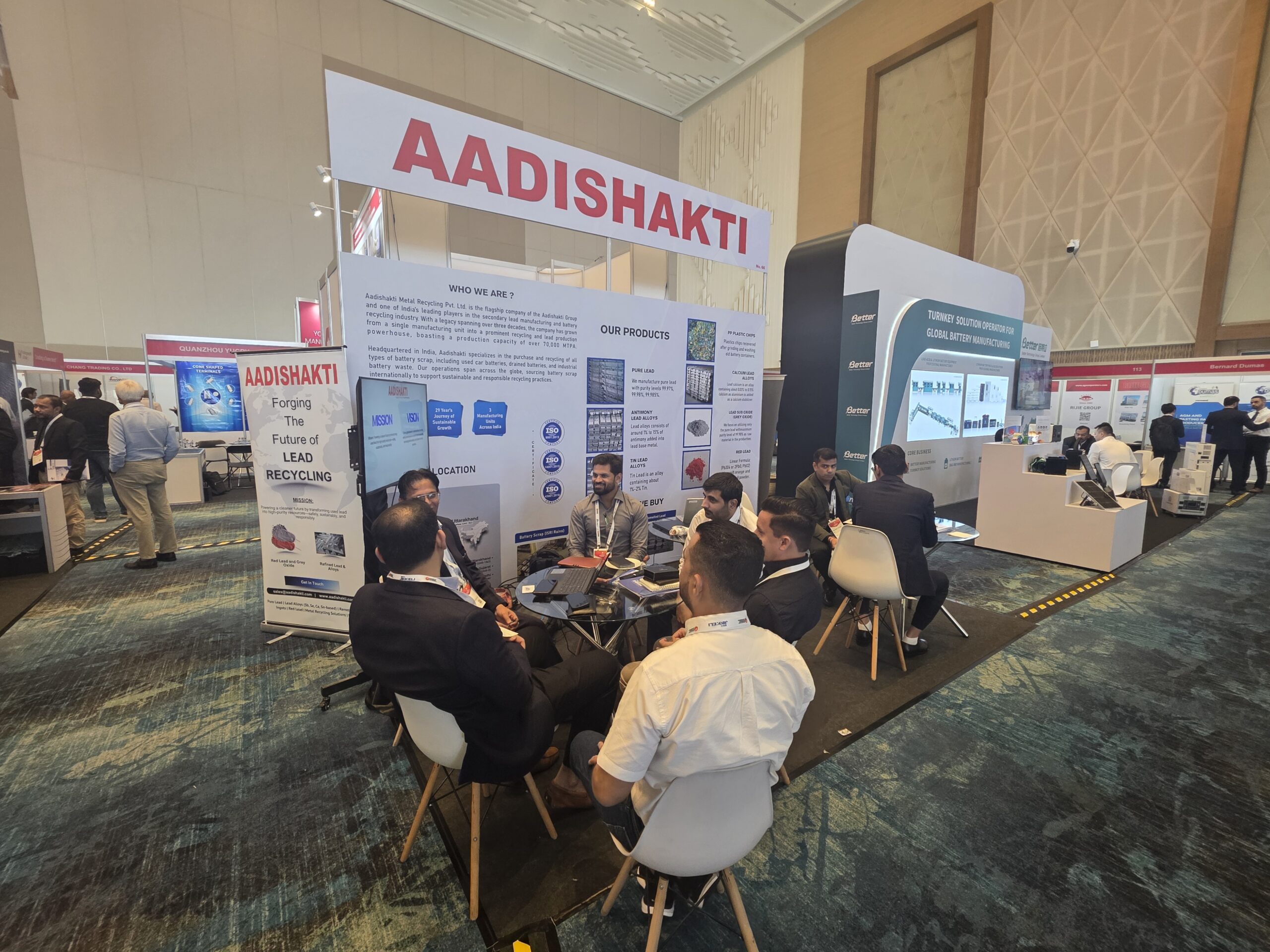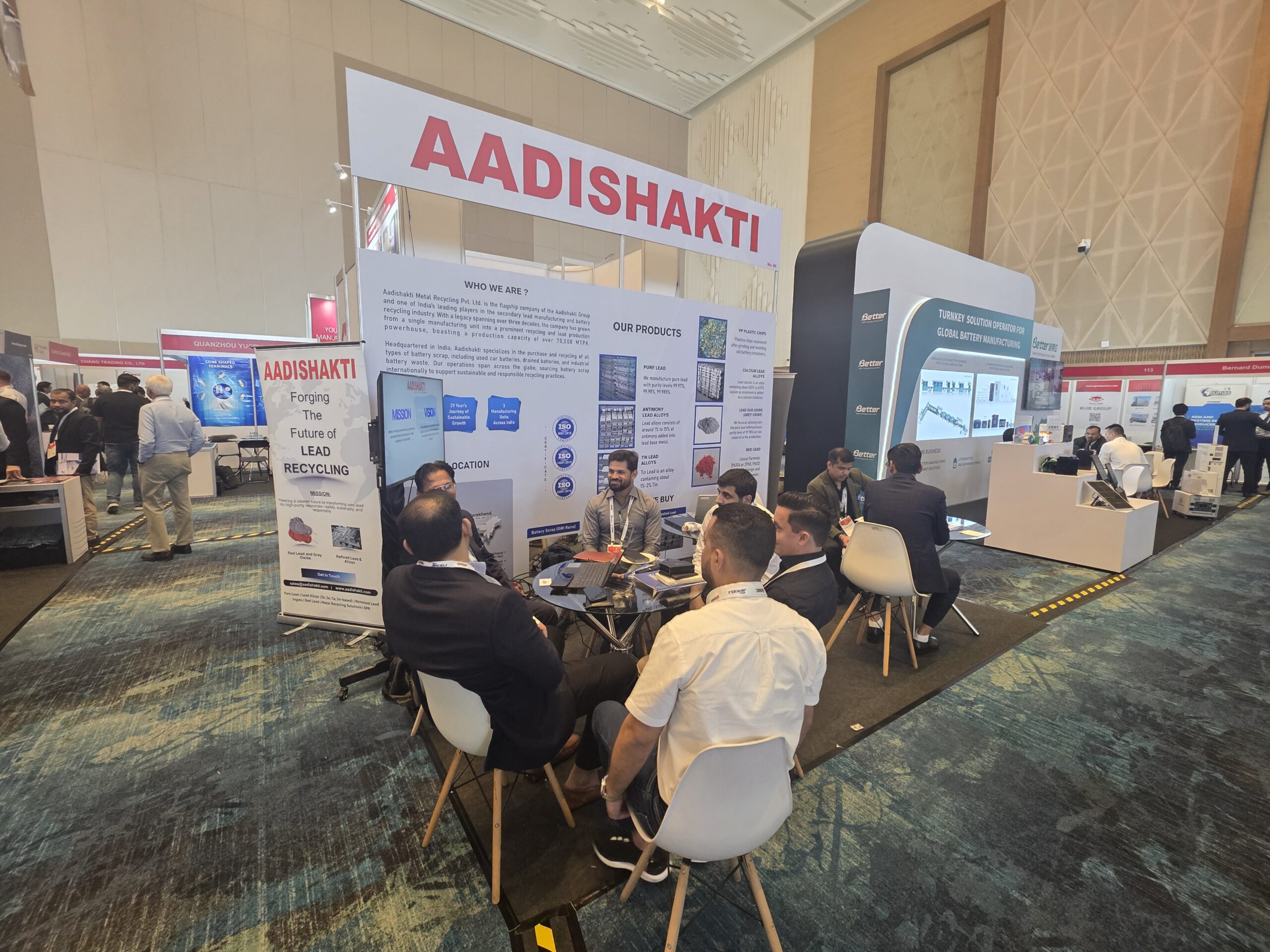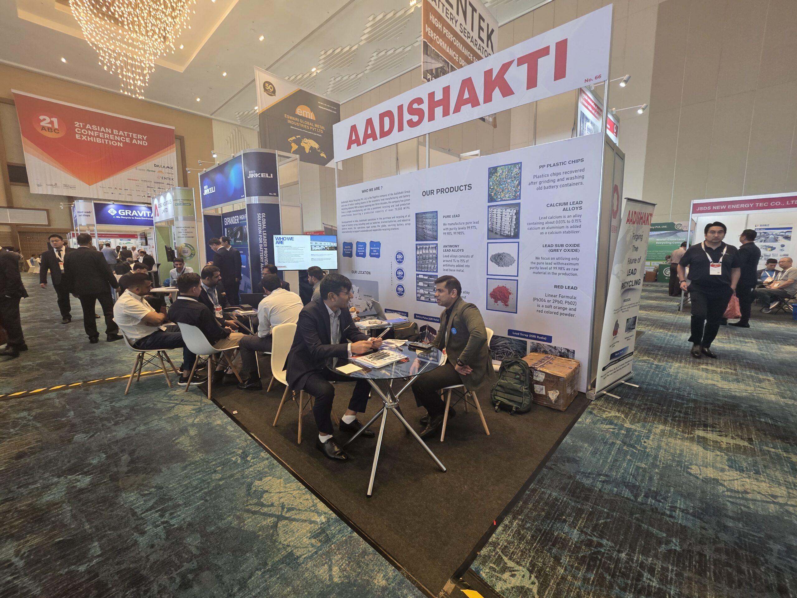 At Booth No. 1 (Recycle 100) and Booth No. 66 (ABC), Aadishakti showcased its expertise in lead recycling, refined lead production, and battery solutions, engaging with global leaders, innovators, and industry stakeholders.